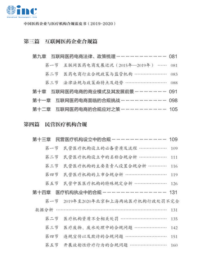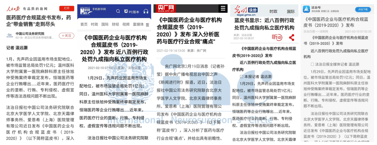 此前,作為國(guó)際高神經(jīng)外科醫(yī)學(xué)領(lǐng)域的私立醫(yī)生集團(tuán)代表,INCINC曾與法制日?qǐng)?bào)社中國(guó)公司法務(wù)研究院聯(lián)合成立醫(yī)療行業(yè)研究中心,該研究中心旨在針對(duì)當(dāng)前醫(yī)療行業(yè)存在的違規(guī)亂象提出建設(shè)性解決方案,進(jìn)一步明確醫(yī)療行業(yè)各類“合規(guī)”標(biāo)準(zhǔn)。2021《藍(lán)皮書》的出版發(fā)布即是該研究中心對(duì)新時(shí)期醫(yī)藥企業(yè)和民營(yíng)醫(yī)療機(jī)構(gòu)合規(guī)問(wèn)題的重要研究成果。