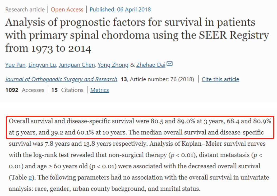 有論文稱:在1973年至2014年的808例原發(fā)性嵴索瘤患者的數(shù)據(jù)顯示,嵴索瘤5年生存率為68.4%,10年生存率為39.2%。令人振奮的是,案例中的這名患兒于2005年接受了Rutka教授團隊的切除手術(shù)和綜合治療,10年后病情仍未復發(fā),也沒有出現(xiàn)神經(jīng)功能缺陷。