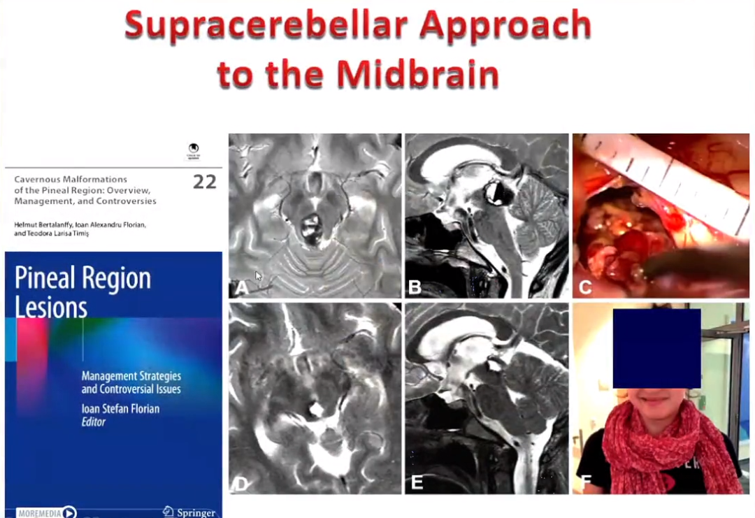 圖示:巴教授結(jié)合中腦海綿狀血管瘤生長(zhǎng)部位、形態(tài)、特點(diǎn)選擇較佳的手術(shù)入路
