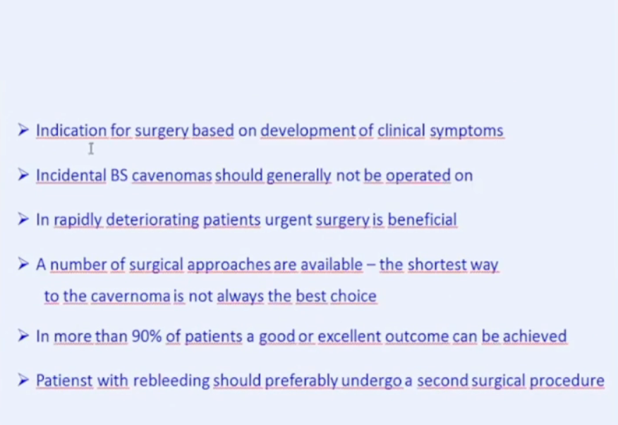 2、偶然發(fā)現(xiàn)的(靜態(tài)的,無臨床表現(xiàn),無出血)海綿狀血管瘤暫時不需要手術(shù)治療;