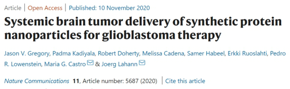 2020年11月10日,美國(guó)密歇根大學(xué)的研究人員在 Nature Communications雜志發(fā)表了題為: Systemic brain tumor delivery of synthetic protein nanoparticles for glioblastoma therapy的研究論文。